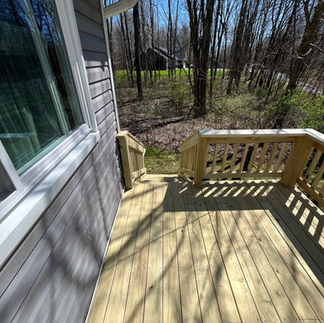 The old deck allowed for a person to walk above the garage door but didn't connect to the front deck, you could only access it thorough a door by the front entry area, so now the decks are connected and added steps to allow for easier access.