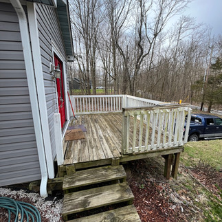 Replacing Ray and Kim's deck was fun. The old deck was allowing water to collect against the house and make its way into the home, so the old deck needed to be replaced. Because of the water some of the joists above the garage (and below the kitchen) needed replaced. Adding ledger board above the garage was also a necessity!!